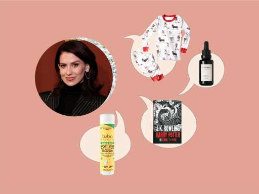 “A lot of Babo Botanicals, that’s our go-to. Carmen is the funniest thing in the world in terms of primping right now; she wants to put make-up on and do face masks and she’s always inventing face masks. Like, I’ll go into the kitchen and there’s an avocado and a banana missing, and she’s upstairs making masks. So I’ve gotten her some from Sephora, this one watermelon mask that she loves. My 4-year-old has eczema and it’s gotten better, but he has sensitive skin and the only thing that could help it was Waxeline. It’s like my windex in My Big Fat Greek Wedding, you know that movie? Put some Windex on it! Put some Waxeline on it. Either that, or breastmilk.”