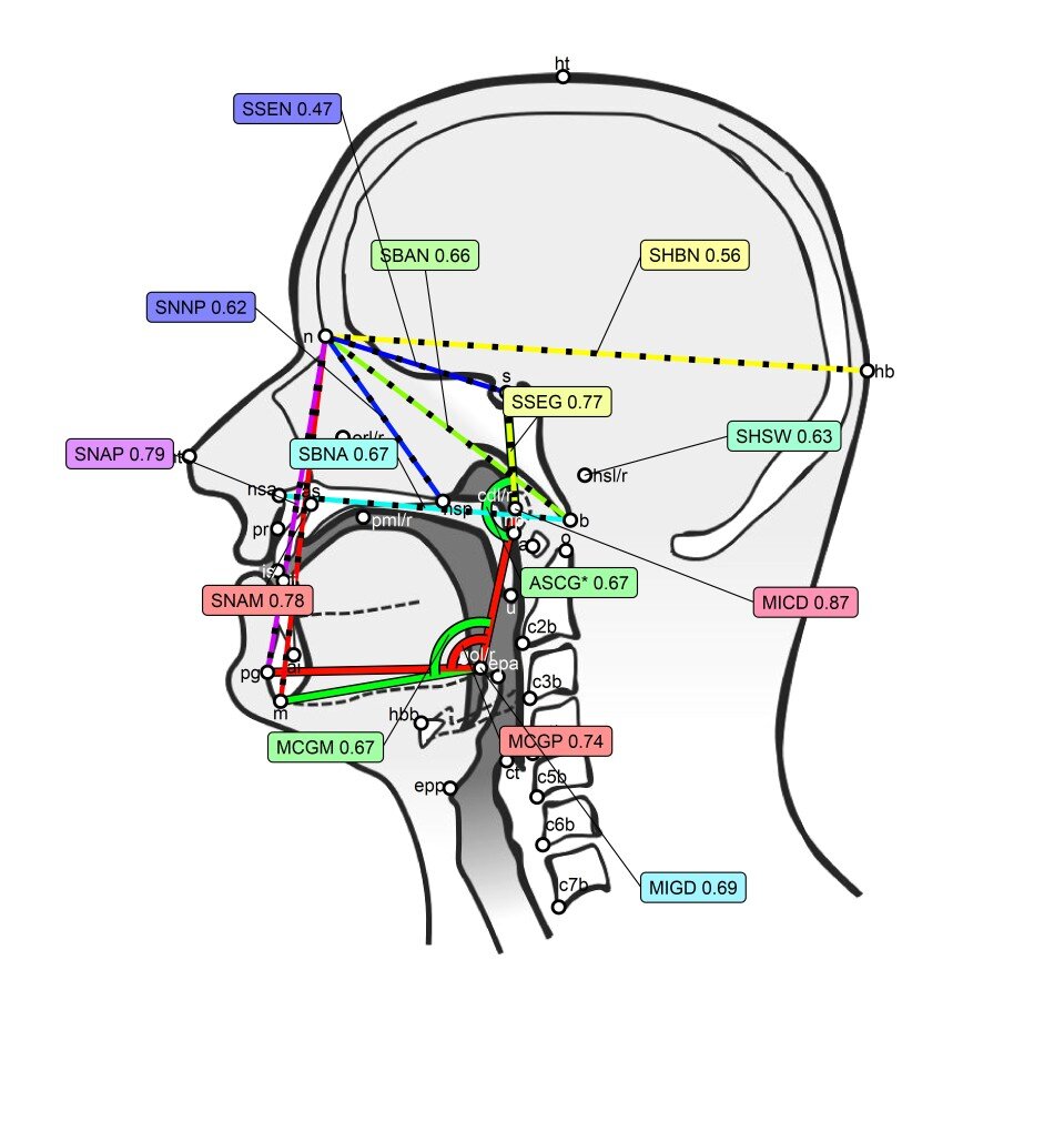 One innovative aspect of the methodology of this study is that the analysis of these images was performed by two independent researchers, who first trained in a rigorously defined protocol based on the anthropological and phonetic literature. Following this protocol, they marked, during six months of intensive work, the 3D images to identify clearly defined anatomical structures and to describe curves and surfaces. From these marks, they obtained a set of measurements, such as distances, angles, curvatures, proportions, etc., to capture the dimensions and shape of vocal tract structures and their inter-relationships.