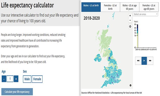 Another handy tool, shared by the ONS, allows users to work out what their average life expectancy is from any age.